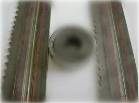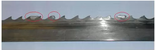 c) 一側齒尖與鋸床某個部件發生異常的接觸,如鋼絲刷等。