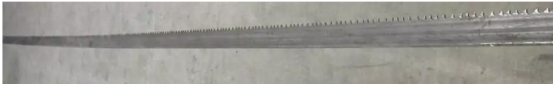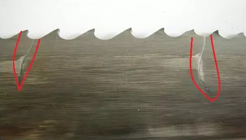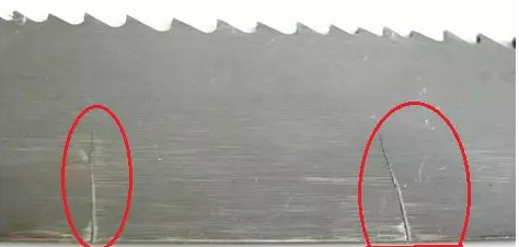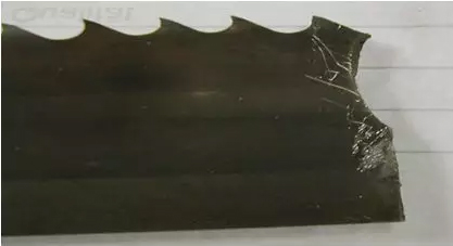 帶體從齒溝開裂,并且裂紋馬上延伸到背邊并造成鋸條短時間斷裂。