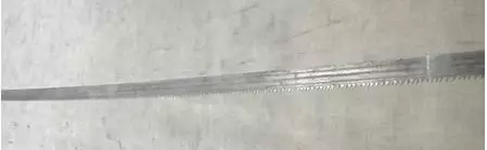 鋸條出廠后一般會是直的或者出現正刀彎,如果出現很大的刀彎,應為異常情況。國家標準為6m 長,正負25mm為限。